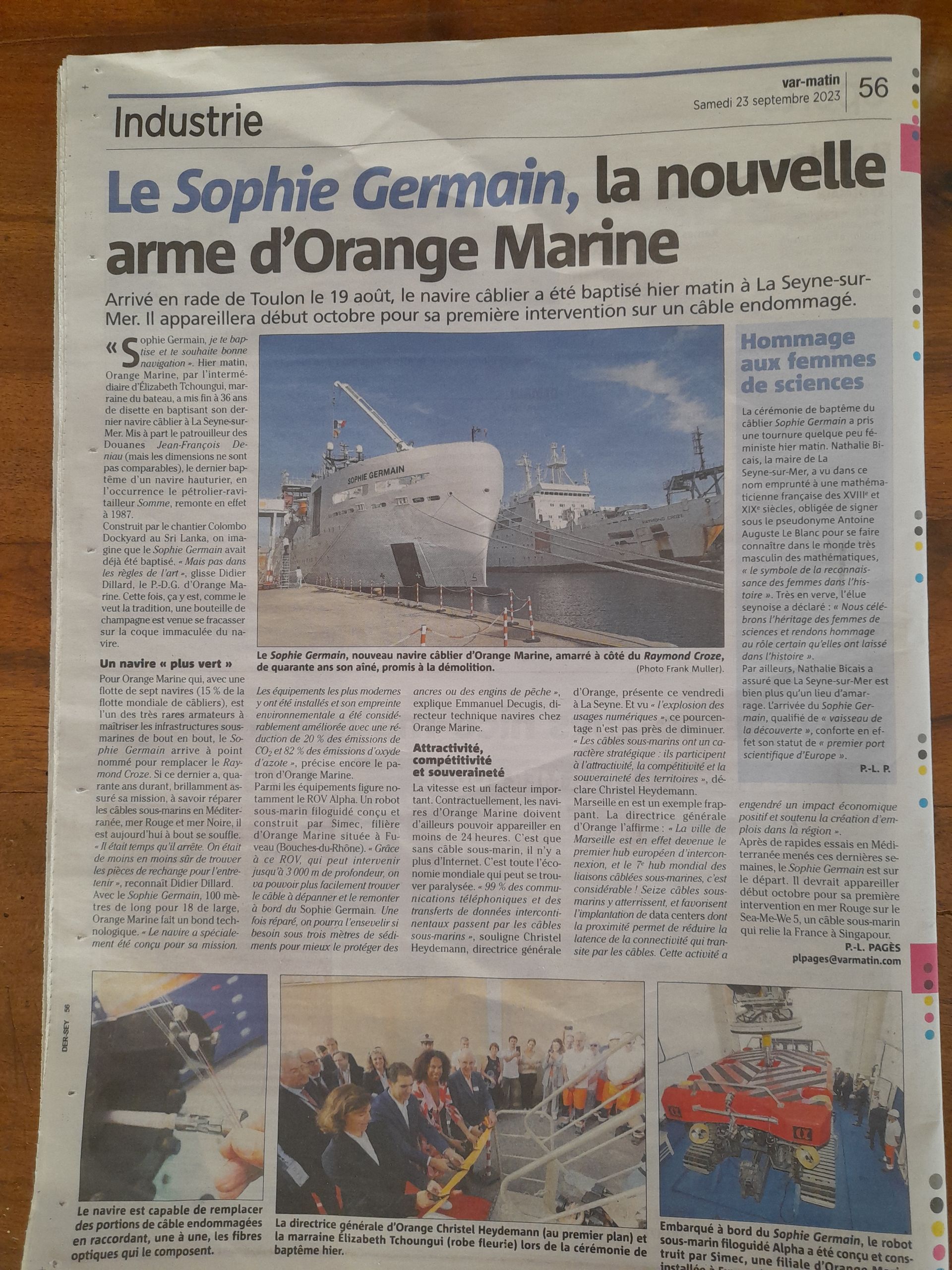 La Seyne-sur-Mer: Orange inaugure le navire câblier "Sophie Germain"
